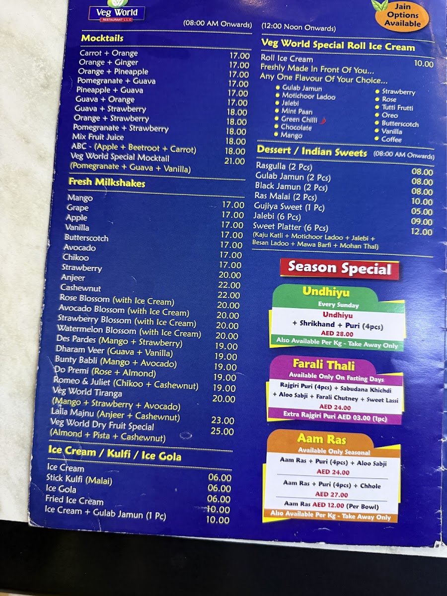 Welcome to Veg World Restaurant LLC, a vibrant culinary oasis nestled in the heart of Meena Bazar, Bur Dubai. This gem celebrates vegetarian cuisine with a delightful focus on authentic Indian and specifically Gujarati flavors, transporting you straight to the bustling streets of Mini Bombay. The moment you step inside, you’re greeted with a lively ambiance that sparks joy, especially in the evening when the restaurant buzzes with energy.